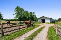 Beautiful 10 acre horse farm in South Mono with privacy and great separation between the barn and house. Set well off the road, the property leading up to the house is park-like with mature trees and is gently rolling, adding to the character of the property. Well maintained main house with 3 bedrooms - primary with walk-in closet and 4 pc ensuite. Huge living room with woodstove insert and walk-out to yard. Large eat-in kitchen with stainless steel appliances and walk-out to large deck and fenced backyard. Sunroom with tons of light is perfect for an office or creative space. Clean, bright and updated lower level apartment features 1 bedroom plus office and spacious above ground living area. Updated eat-in kitchen. Updated 4 pc bath and spacious living room with huge windows. The two living spaces can easily be converted back to one house as the stairs connecting upstairs and downstairs as still in tact. Updated windows, roof and fascia and soffits. A separate driveway leads to a 10-stall barn with hay-loft above, hydro and water. Three good sized paddocks and separate round pen. Huge back paddock partially finished with posts already added. Lots of room for a outdoor riding ring if desired or additional paddocks. Fabulous location just north of Highway 9 and just south of Hockley Village and all the community has to offer.