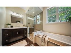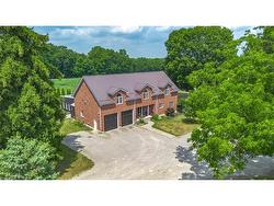 An exceptional farm located on prime agricultural land of 53 acres in the County of Brant. The 2001 Red Brick two story home is move in ready and shows beautifully. Updated with new kitchen (2018),upper floor baths ( 2017), basement bath (2024), upper hardwood floors (2019), roof (steel) furnace and air ( 2019), owned hot water tank ( 2021), well 2008. Main floor is open concept great room /dining and kitchen with pot lights, upgraded stainless appliances, counters, island and double sink. hardwood and tile floors, high ceilings, big windows , gas fireplace, french doors to deck. 2pc bath on this floor and storage pantry. Double closets. Entrance to double garage. Grand stair case to upper floor where you will love the huge family room with gas fireplace and entertainment centre, tucked away laundry area, room for card table and office area in this big room with vaulted ceilings.. Three spacious bedrooms. Primary with walk in closet and lovely four piece ensuite. 4pc family bath. Round top windows throughout his level that allow wonderful views ! recreation room, 3pc bath and fourth bedroom in basement. Lots of storage. A completely self contained addition contains a gorgeous inground saltwater pool room with stamped concrete heated floors, windows all the way around, french doors , vaulted ceilings and top of the line HRV system which prevents any condensation and keeps the temperature even. What a great exercise option, family gatherings, pool parties and just to enjoy being in a resort like atmosphere at your own home. Separate 60 x 40' steel workshop with second floor office. Air conditioned and cooled. Two piece bath. 33 x 32' building can be utilized as a guest cottage, second family living, permitted for store or office , has tall ceilings, white washed walls and 2pc bath ( easy to ad a shower..) this building has its own furnace with air. and its own septic.. Small finished building for exercise or office. Pond and fenced paddocks. Three box stalls.