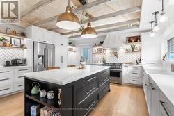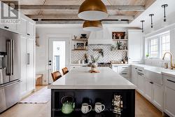 Experience the perfect balance of historic charm and modern luxury in this custom-restored century home, fully renovated within the past four years. Offering approximately 2,000 sq. ft. of refined living space plus a finished two-story coach house, this property delivers unmatched craftsmanship and attention to detail. Inside, you'll find wide-plank oak hardwood flooring, designer finishes, and custom millwork throughout - from the restored staircase to the bespoke built-ins and trim. The chef's kitchen is equipped with premium JennAir and Bosch appliances, a farmhouse sink with Moen smart faucet, a wet bar with filtration system, and custom cabinetry with thoughtful organization. The primary suite features a spa-inspired ensuite with heated floors, soaker tub, dual vanity, and Riobel fixtures, plus a walk-in closet with built-in lighting and custom storage. Additional highlights include a tankless water heater, dual-zone HVAC, metal roof, energy-efficient windows, and full spray-foam insulation for year-round comfort. Smart-home automation brings effortless living - with intelligent lighting, blinds, thermostats, locks, fans, and an integrated Sonos audio system, all tied into a professionally monitored security setup with cameras and motion lighting. The fully finished coach house offers independent comfort with dual-zone ductless heating and cooling, a sauna, new windows, separate hydro meter, and EV charging port - ideal for a home office, studio, or guest suite (can easily be converted back to a garage) Enjoy professionally landscaped grounds featuring mature trees, a gazebo and BBQ area, paved driveway and direct access to Tom Taylor Trail. Located within walking distance to Pickering College Private School, Main Street Farmers Market, skating rink / splash pad, Community Centre, Main Street, GO Transit, Southlake Hospital, and Fairy Lake. This property offers the rare combination of convenience, privacy, and timeless appeal. (id:27)