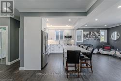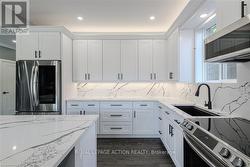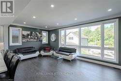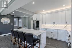 WOW! Stunning, new home in highly sought-after Port Dover, just steps from Black Creek! This home offers versatility for todays lifestyle. Appreciate the private double-wide driveway, accommodating up to 6 vehicles, & the stamped concrete front porch. A spacious foyer features double mirrored closets, 9-foot ceilings, & oak hardwood flooring that flows throughout the home. Located off the foyer is a laundry room with quartz countertops. On the opposite side, is a beautifully finished 4-piece bath with textured tile floors, quartz vanity & tile shower surround. The open-concept main floor is filled with natural light & offers beautiful canal views. The custom kitchen is a showstopper, boasting a 5-seat island, quartz counters & backsplash, under-mount lighting, dovetail soft-close cabinetry, stainless steel appliances & pantry. Additional features include pot lights & crown molding that continue into the living area, creating a seamless flow. Upstairs, enjoy a versatile space with 12-foot vaulted ceilings, recessed lighting, wet bar with quartz counters & bar fridge-perfect for entertaining, working from home, or relaxing. 7-foot sliding doors lead to a covered Dura-deck with glass railings, offering breathtaking views of the canal. There are 3 spacious bedrooms, including a primary suite, & a luxurious 5-piece bathroom with double quartz vanity & textured tile flooring. On the lower level, a landing leads to the back of the home & a flexible storage/utility room with a 3-piece bath rough-in, secondary laundry option & mechanical systems. This space offers great potential for a variety of future uses. A 1.5 car garage is just off this space featuring drain and water supply line rough-ins. Located just minutes from the heart of Port Dover, this home offers a peaceful retreat with easy access to local amenities. The owner may consider selling the land behind the home on the canal providing the possibility to add some green-space, a docking spot & access to Lake Erie!! (id:7525)