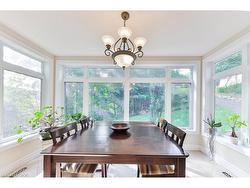 **Exceptional Muskoka-Inspired Retreat Overlooking Bronte Creek!**Discover serene country living in sought-after Glen Abbey, truly one-of-a-kind exquisite custom home nestled on a 0.85 acre private ravine lot overlooking the tranquil Bronte Creek, boasting over 5,600 sqft living space, features 4+2 bedrooms &5 bathrooms. Enjoy the breathtaking scenic views from nearly every room and the multi-level deck, perfect for enjoying quiet mornings or hosting gatherings. Top-rated schools, like Abbey Park High School and renowned gifted program schools.Step inside to be greeted by the stunning quality finishings that define this property. Beautiful hardwood floors and natural stone elements, including limestone and granite, add elegance and charm throughout. Enjoy the added comfort of heated floors in the kitchen, ensuring a touch of luxury every day. The home boasts 4 spacious bedrooms above grade, complemented by a thoughtfully designed 2-bedroom in-law/nanny suite on the lower level with a separate entrance for privacy and convenience. Don't miss this rare opportunity to own a country-like sanctuary with all the conveniences of town living. Experience the best of both worlds in this extraordinary home.