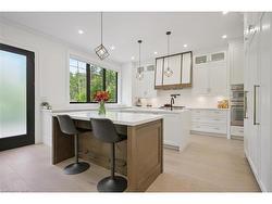 Welcome to this exceptional Keeren Design luxury residence nestled at a quiet cul-de-sac off Morrison Road in prestigious Southeast Oakville. Set on a lush, professionally landscaped ravine lot with creek views, this 2 year new custom-built home offers around 5,400 sqft. of refined living space, exuding elegance, unparalleled craftsmanship, and modern innovation throughout.Stepping in through the triple-pane mahogany front entry, soaring 10 ceilings on the main floor and 9 ceilings upstairs are complemented by white oak hardwood floors, extensive plaster crown moulding, custom wainscoting, and a dramatic open-riser staircase. The chefs kitchen is outfitted with double centre islands, top of the line appliances, Riobel fixtures, Zomodo sinks, Top Notch cabinetry, and a second fully equipped spice kitchen. Additional features include main floor office with custom cabinetry, accent walls through-out, a built-in mudroom, and floor-to-ceiling fiberglass windows framing the ravine.2nd floor is entrenched with natural light through the flared skylight with LED Light Valance, all bedrooms feature custom panel detail, crown moulding, and private ensuites with Riobel fixtures, large-format tiles, heated floors, and wall-hung toilets. The spa-like primary ensuite includes a steam unit and LED valance lighting. The walk-up basement boasts a 5th bedroom with private ensuite, a bar, large recreation space, and a stunning under-garage theatre room wired for Dolby Atmos.Enjoy the private resort-like outdoor living with in-ground pool, paving stone patios, armour stone accents, and a smart RainBird irrigation system, 6"x6" privacy fence, stone skirt. Smart home features include motorized blinds, Lutron lighting, 16 hardwired security cameras, Ecobee, Honeywell security, MyQ garage control, CAT6 wiring, and a smart irrigation systemall designed for seamless living in Oakvilles most coveted neighborhood.