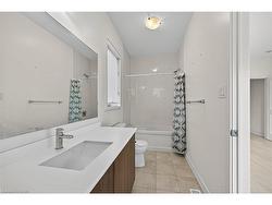 Stylish, modern freehold end unit townhome in desirable North Oakville. Offering 3 bedrooms and 3 bathrooms over 3 fully finished levels of living space. Entry level provides a spacious recrm , 2 pce bathroom and utility room. There is easy access from this level to the back yard and inside entry to the single car garage. Moving up to the main level you will find a bright living room with door to small balcony, big dining area and a modern kitchen with sleek cabinetry and solid surface counters. The upper level features 3 bedrooms, two bathrooms and laundry closet. The primary bedroom features a private ensuite and big walk in closet. Easy highway access for commuters. Don't miss out!!