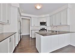 Experience refined elegance in this stunning family home built by Biddington Homes, offering 5,001 sq. ft. of exquisitely finished living space across 3 levels. Nestled in the vibrant family friendly community of River Oaks in Oakville, this 6-bedroom (4+2), 5-bathroom (4+1) residence showcases quality craftsmanship and luxurious upgraded finishes throughout.With 3,409 sq. ft. above grade and 1,592 sq. ft. below, the bright, and spacious open concept layout features engineered hardwood floors and soaring min. 9-ft ceilings on all levels. The main floor impresses with elegant formal living and dining rooms, a cozy gas fireplace in the family room, and a gourmet eat-in kitchen with quartz counters, stainless steel appliances, and a large breakfast area with walkout to the rear deck.A stunning open circular staircase unites all three levels, while the main level laundry/mudroom adds everyday convenience. Upstairs, find 4 generously sized bedrooms including two with ensuite baths and two sharing a semi-ensuite. The private primary retreat offers a vaulted 13’ ceiling, sumptuous spa-like 5-piece ensuite and a spacious dressing room.The fully finished lower-level features 9-ft ceilings, a large recreation room with fireplace, a stylish bar or kitchenette ideal for multi-generational living, 2 bedrooms, a full bath, and ample storage.Pride of ownership by the original owners is evident with the freshly painted interiors throughout and a new roof. Set on a private, fully fenced corner lot with an irrigation system, this home is close to top-rated schools, trails, parks, shopping, highways 403 & 407, and Sheridan College. A true gem and a rare opportunity not to be missed in one of Oakville’s most sought-after neighbourhoods.