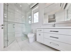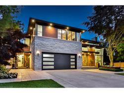 Designed to capture panoramic water views - Waterfront luxury awaits at 2250 Chancery Lane W. On exclusive SE Oakville enclave, this modern masterpiece offers 9,177 sf w/5 bdrms & 7 baths. Bright & airy w/ soaring 10ft ceilings on every level & vast windows. Chef's kitchen w/ modern cabinetry, quartz countertops & slab backsplash & top-of-the-line Gaggenau B/I appliances. All living & entertaining spaces are generously proportioned, offer lake vistas & lux finishes such as suspended slab fireplaces, designer lighting & integrated storage to maintain a sleek aesthetic. Multiple walkouts lead to natural stone terrace & infinity pool. MF office. Upstairs - Primary retreat, w/spa-like ensuite & Lake views. 3 add'l bdrms, each w/ensuite, & a laundry rm. Lower Level-Automated theatre, golf simulator, rec/games room w/wet bar; 5th bedroom, exercise room, wine wall, 2 full bathrooms, & walk-up to yard. 3-level elevator, heated tiled floors & full home automation. LUXURY CERTIFIED.