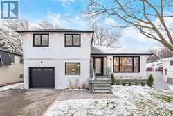 Enjoy this completely overhauled home, showcasing over $500K in recent renovations and featuring a flawless blend of modern luxury and functional living. This beautifully renovated side split is located in one of Oakville's most desirable neighbourhoods. Featuring modern finishes throughout, this home features a bright, open layout enhanced by pot lights and rich hardwood flooring on both the main and second levels, along with elegant oak stairs and glass railings. The high-end kitchen is a true highlight, complete with Jenn Air built-in fridge, 6 burner stove, pot filler, quartz countertops, premium cabinetry, and a walk-out to a spacious new deck-perfect for seamless indoor/outdoor living. The main level includes a convenient bedroom and a warm family room with a fireplace and direct walk-out to the fenced, oversized backyard, ideal for entertaining or relaxing in total privacy. The finished basement adds even more versatile space with a large recreation room, den and a laundry area. Upstairs, the second level showcases three generous bedrooms and two spa-like bathrooms finished with contemporary design and luxurious materials. A rare combination of style, comfort, and functionality in a prime Oakville location-move in and enjoy everything this exceptional home has to offer. (id:27)