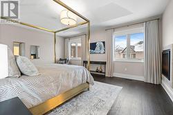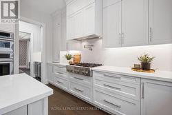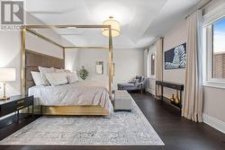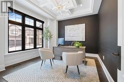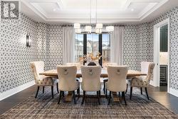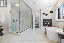 Welcome to the jewel of Glen Abbey Encore. Built by the prestigious Hallet Homes, this stunning professionally designed home offers 4,990 sq. ft. above grade. Everything in this home has been designed with purpose and style in mind. The custom entry door and statement chandelier in the foyer sets the tone for the exquisite interiors. The dining room with coffered ceilings, accent lighting, and custom wallpaper, is complemented by a butler's area featuring a bar fridge and ice maker. A chef's dream, the gourmet kitchen boasts extended cabinetry, quartz countertops, a large island, high-end Jenn-Air appliances including a 6-burner gas stove with pot filler and double wall ovens and a walk-in pantry. The great room features a stunning Dekton fireplace, coffered ceilings and double doors that open to a covered lanai with a fireplace, ceiling fan, and TV-ready setup, creating an inviting space for year-round entertaining. The home office, features coffered ceilings and tons of natural light, offering a refined and functional workspace. The primary suite is a true retreat, complete with morning bar, two-sided fireplace, and a spa-like ensuite featuring heated floors, a freestanding soaker tub, a glass-enclosed walk-in shower, and a double vanity with quartz countertops. Four additional bedrooms, each with private or adjoining ensuites and walk in closets. A thoughtfully designed second-floor laundry room includes dual washers, a dryer, custom cabinetry, folding counter, and fold-out drying racks. Beyond the interiors, the home sits on a premium oversized lot with a fully fenced backyard and a spacious side yard. The three-car garage, designed for automotive enthusiasts, features epoxy flooring, perimeter slatwall storage, an enclosed sports locker, and the capability to accommodate car lifts, along with rough-in for EV charging. Smart home upgrades include an integrated sound system, smart lighting, motorized window treatments, and custom millwork throughout. (id:27)