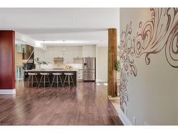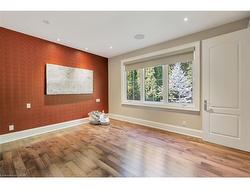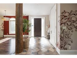 A remarkable lifestyle awaits in Oakville’s highly sought-after West Oakville community, where every convenience is just steps away. This exquisite custom raised bungaloft, redesigned in 2016 by Keeren Designs, backs directly onto the scenic Donovan Bailey Trail & is only a 3-minute walk to the Queen Elizabeth Park Community & Cultural Centre. Enjoy nearby Bronte Harbour, Lake Ontario, waterfront parks, & Bronte Village’s shops & restaurants, all just minutes away, with quick commuter access to Bronte GO Station & the QEW/403. Showcasing undeniable curb appeal, this luxury home features a stucco façade with accent shutters, stone steps leading to a covered entry with columns & iron railings, interlocking stone walkways, professional landscaping with mature trees, a 9-zone irrigation system, & exterior cameras. The private backyard retreat offers upper & lower stone patios, gardens with armour stone accents, evergreens, & direct trail access. Inside, the residence boasts 2+3 bedrooms, 2.5 bathrooms, & a versatile loft perfect as a bedroom, home office, or studio. The 2016 transformation added a gourmet kitchen, wide-plank hardwood, designer tiles, custom built-ins, deep trim, built-in speakers, & expandable Control4 smart home automation. Designed for comfort & entertaining, the open-concept main floor offers 9’ ceilings, family room with gas fireplace, spacious dining room, & chef’s kitchen with custom cabinetry, quartz counters, oversized island with seating for 6, high-end appliances, & a breakfast area with walkout to the backyard. The primary suite showcases 2 walk-in closets & a spa-inspired 4-piece ensuite with soaker tub & oversized glass shower. The finished lower level includes a large recreation room, 3 bright bedrooms, 3-piece bath with heated floor & glass shower, oversized laundry, & abundant storage. Upgrades include furnace, HRV, roof shingles (2016), & recently, some main floor windows updated, & addition of a custom 8’ solid wood front entry door.