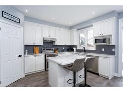 Welcome to Oakville's prestigious Joshua Creek community-where convenience, luxury, & top-rated schools meet. This custom Dawn Victoria built home meticulously maintained & tastefully updated 4-bedroom, 3.5-bathroom family home is located within the Iroquois Ridge High School catchment & just a short walk to the Iroquois Ridge Community Centre. Everyday essentials, shopping, & dining are minutes away at the Uptown Core, while commuters will love easy highway access. The home's elegant stone & stucco façade is complemented by manicured gardens, soffit lighting, & a patterned concrete walkway leading to the covered front entrance. Inside, discover a customized layout with 9-foot main-floor & basement ceilings, a refinished staircase, refinished hardwood & engineered hardwood flooring (2025), pot lights, & California shutters. The spacious dining room is perfect for hosting, while the inviting family room features wall-to-wall custom cabinetry surrounding a cozy gas fireplace. The renovated kitchen (2021) is a chef's dream, with quartz countertops, white cabinetry with crown mouldings, an island with a breakfast bar, a walk-in pantry, & stainless steel appliances. The breakfast area opens to a large deck with a full-width electric awning, an expansive patio ideal for entertaining, & a gas hookup for barbecuing. Upstairs, you'll find 4 generous bedrooms, a convenient laundry room, & 2 full baths, including a luxurious 5-piece primary ensuite with a corner soaker tub & separate shower. Professionally finished basement offers exceptional recreation room, custom bar with granite counters, gym, office/bedroom & a 3-piece bathroom. Additional highlights include a re-shingled roof (2025), a double garage with epoxy flooring & inside entry, & an irrigation system. This stunning property blends timeless craftsmanship, modern upgrades, & an unbeatable Oakville location-perfect for families seeking comfort, sophistication, & convenience in Joshua Creek real estate.