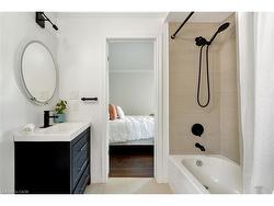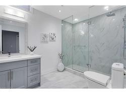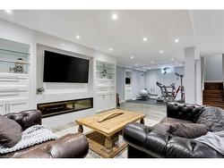 Discover luxury living in this Monarch-built executive home in Oakville’s prestigious Bronte Creek neighbourhood, just steps from trails, Colonel William Woods Park, & Bronte Creek Provincial Park—ideal for hiking, biking, & family adventures. This exceptional Bronte Creek real estate gem sits on a re-landscaped lot with a stone & stucco façade, stone tile walkways, manicured gardens, soffit lighting, & a private backyard oasis featuring a saltwater pool, sheer descent waterfall, & extensive stone patio for outdoor entertaining. Inside, over 5,000 sq. ft. of upgraded living space includes 4+1 bedrooms, 4.5 bathrooms, & a professionally finished basement (2020) with a recreation room, wet bar, glass-enclosed gym, a fifth bedroom, & a modern 3-piece bath. Elegant finishes—wide-plank hardwood floors, crown mouldings, designer tiles, custom cabinetry, custom blinds, California shutters, & stone countertops—are complemented by 9-foot ceilings & expansive windows. The main level offers formal living & dining rooms, a custom kitchen with premium appliances, a dramatic two-storey family room with fireplace, a private office, a dream laundry room & chic powder room. Upstairs features 4 spacious bedrooms & 3 spa-like bathrooms, including a primary retreat with a 5-piece ensuite boasting a lavish soaker tub & separate glass shower. Recent upgrades include 2 updated upstairs bathrooms, new second level laminate floors & baseboards, 100 new pot lights, updated fire stones in the electric fireplace, integrated wall vents, designer feature wall in the dining room, fresh paint, new door hardware, & a Tesla charger added to the garage. Located minutes from top-rated schools, shopping, restaurants, Oakville Trafalgar Hospital, & major highways, this showpiece family home in Bronte Creek offers luxurious living in a prime Oakville location.