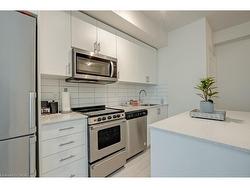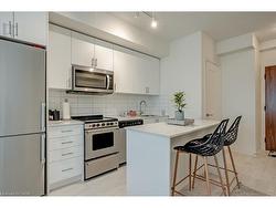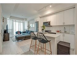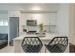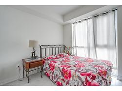 Bright 1Bedroom + Den, 1Bath condo with parking and locker, offering 560 sq. ft. of well-designed living space. Spacious north facing balcony overlooks the quiet plaza interior and blocking off street noise. Located on the 4th floor, this unit features 9-ft ceilings, quartz countertops, stainless steel appliances, and a neutral colour palette that creates a bright, airy feel. Excellent choice for first-time buyers or elderly downsizing. Across from the condo, is the sixteen mile community center, walking trails and the library! Enjoy an excellent walk score with easy access to medical services, grocery stores, banks, schools, parks, offices and recreation. Quick drive access to Hwy 407, 403, QEW, GO Station, and hospital makes commuting effortless.