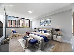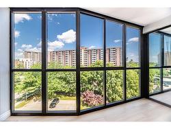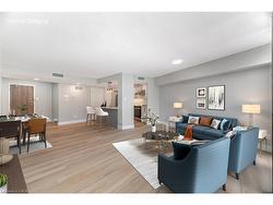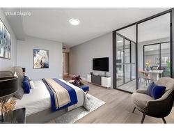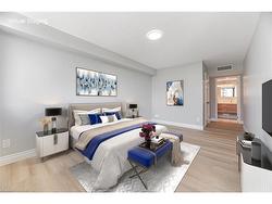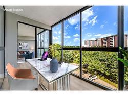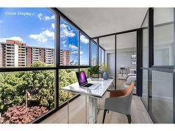 Welcome to Sovereign II, where luxury meets lifestyle in this completely renovated 2-bedroom plus solarium/office, offering 1,207 sq. ft. of stylish, open-concept living. Thoughtfully redesigned, this bright and spacious unit features northwest-facing windows that fill the space with natural light and provide beautiful sunset views. The modern kitchen is perfect for entertaining, showcasing quartz countertops, a breakfast bar, and brand-new stainless steel appliances. Additional features include under mount lighting and sink, self-closing drawers, a large pantry with built-in microwave, and pot lights. The open layout seamlessly connects the kitchen to the living and dining areas, creating a warm and inviting atmosphere. The expansive primary bedroom is a true retreat, offering a walk-in closet with and a stunning 5-piece ensuite with double sinks, a soaker tub and shower. The second bedroom is generously sized, and the enclosed solarium offers the perfect space for a home office. Residents enjoy a full range of amenities, including an indoor pool (under construction), fully equipped gym, sauna, party room, and beautifully landscaped outdoor seating areas. The unit comes with one exclusive underground parking space and a private storage locker. Maintenance fees cover internet and cable, water, etc. Ideally located just steps to Oakville Place Mall, Sheridan College, parks, public transit and with easy access to major highways and nature trails. This is more than just a home it's a turnkey lifestyle opportunity in one of Oakville's most convenient and well-maintained communities.
