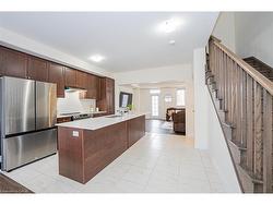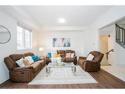 Separate Living and Separate Family With backyard, 4-bedroom (Including rec room on main) 3-bathroom transitional 3 storey townhome, 1732 Sqft located Close to Hospital, Georgian college Campus, Freshco, Walmart, Home Depot, parks and schools. The open-concept main floor includes a bright Family room, a Cozy Living room and big size island/breakfast bar with quartz countertops, pantry, upgraded cabinets, backsplash. Upstairs, the primary bedroom offers a private 4-piece ensuite and its own balcony with his and her closet. Two additional bedrooms provide plenty of space and natural light with their own closet. The main level features bedroom with Closet perfect for a home office or guest bedroom. This home includes upgraded Hardwood flooring, smooth ceilings on the main and second floors, and elegant stained oak stairs. This home perfectly combines modern living with small-town charm. Minutes from Higways and from GtA.Rental Item: Hot water Tank