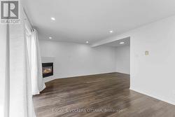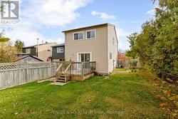 This beautifully renovated 3-bed, 1.5-bath end-unit Barrhaven home, located on a premium corner lot, offers the privacy and feel of a detached home, since it's attached only by the garage. Inside, the main level greets you with a bright, airy foyer opening into a spacious, open-concept layout. The kitchen features expansive counter space, cream cabinetry, and a suite of stainless-steel appliances, with a pass-through to the dining area. The adjoining living and dining room shines with dark-stained hardwood floors, a cozy corner gas fireplace, and both a large window and sliding glass doors that deliver abundant natural light and direct access to the deck. Upstairs, the generous primary bedroom has wide-plank flooring, a statement light fixture, and a custom closet system hidden behind sliding barn doors. Two windows and a skylight enhance the bright, airy atmosphere. This level has two additional bedrooms, providing flexibility for a family or a home office. An updated full bathroom with a modern vanity, gold-accent mirror, and a tub/shower combo completes this level. The lower level significantly expands your living space, with a large recreation room, a sleek half bath, and a practical laundry room with a side-by-side washer & dryer (2024). Outside, the oversized fenced yard is a rare find with ample room for kids to roam, summer barbecues on the elevated deck, gardening, or simply relaxing in privacy. This home enjoys easy access to excellent schools, abundant parks and walking trails, and major amenities including shopping and dining at Chapman Mills Marketplace and Barrhaven Town Centre. Recreation opportunities are nearby at Walter Baker Sports Centre, and transit access via nearby OC Transpo routes makes this an excellent home for both growing families and professionals! (id:27)