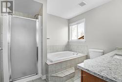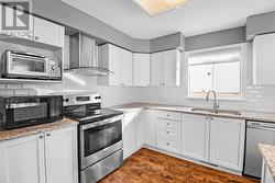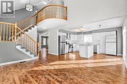Beautifully updated 4-bedroom, 3-bathroom detached home in Hunt Club Park. A tiled foyer opens to a bright and spacious main floor with large windows and hardwood throughout. The stunning white kitchen features granite countertops and a large island with breakfast bar, overlooking the impressive family room with vaulted ceilings, a palladium-style window, and a natural gas fireplace. Formal Living and Dining rooms, a versatile den and a powder room complete the main level. Upstairs offers four well-sized bedrooms, including a generous primary suite with vaulted ceilings, large windows, a walk-in closet, custom wardrobe, and a 4-piece ensuite with a soaker tub and walk-in shower. A full main bathroom and a conveniently located laundry room complete the upper level. The expansive, fully finished basement provides a large recreation area and a 2-way gas fireplace shared with the den. Outside, enjoy a spacious fenced backyard with a storage shed.2022 Updates: New hardwood on main floor, new carpet on 2nd floor, Kitchen: granite countertops and backsplash, upstairs bathrooms updated. (id:27)