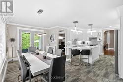 1591 Stephanie Anne Drive invites you to enjoy luxurious living on a peaceful, treed corner lot surrounded by manicured 20-foot hedges for privacy and set back from the road in one of Greely's most established and coveted communities. The main floor opens with a grand foyer boasting vaulted ceilings, ceramic tile and gleaming hardwood floors. Anchored by a gas fireplace with soaring 13-foot ceilings, the living room exudes warmth and grandeur, while the separate dining room sets the stage for memorable gatherings. The spacious designer kitchen is perfect for hosting and features quartz counters, stainless steel appliances, and a large central island with seating. A bright adjoining eating area with oversized windows extends to a private backyard and two-level hardscape patios, perfect for morning coffee or evening relaxation. The primary suite offers a walk-in closet, additional wardrobes, and a luxurious 5-piece ensuite. A spacious secondary bedroom and beautifully finished full bath with striking shower tile complete the main level. (3 bathrooms include quartz counters). A striking circular staircase leads to the lower level, where the soundproof theatre takes centre stage with two level seating and cinematic scale. Complementing this is an expansive recreation room with a center gas fireplace, an additional bedroom (currently being used as a gym) with wall-to-wall closet, a home office, a sleek full bath, and a laundry room. This custom home crafted with enduring steel construction, sweeping circular 21 vehicle driveway to the oversized two car garage, and underground irrigation system impress across the manicured property, while the large custom storage shed offers unmatched convenience. Successful inspection reports completed July 2025 (home, well and septic) available upon request. Minutes from schools, parks, shops, and nature trails. This home delivers Greely's tranquility with modern luxury and unforgettable entertainment at home with family and friends. (id:27)