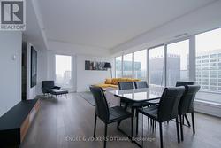 2-STORY PENTHOUSE! This rare 3-bedroom + den, 3-bath luxury condominium in the heart of the Financial District offers sleek contemporary design and exceptional finishes throughout. Freshly painted and professionally cleaned, the open-concept living space showcases dramatic lines, floor-to-ceiling windows, sliding glass doors, and a bright, airy ambiance with urban views. Interior styling blends soft and dark hues with upscale reflective accents, quartz and porcelain surfaces, glass tiles, and high-end stainless steel appliances. A large private terrace with natural gas BBQ hookup extends your living space, while two underground parking spots and the largest private storage locker in the building add unmatched convenience. Residents enjoy premium amenities including a concierge, fitness centre, bike storage, billiards and screening rooms, plus a stylish outdoor terrace. Steps to shopping, transit, steps from the LRT, restaurants, and more. (photos from previous furnished listing) (id:27)