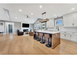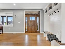 Set on nearly a full acre in a peaceful, upscale neighborhood, this stunning all-brick bungalow offers the perfect blend of luxury, comfort, and space. From the moment you arrive, the triple-car garage and oversized driveway set the tone for the elegance that continues inside. Step Through the front door into a grand open-concept living area highlighted by soaring cathedral ceilings, engineered hardwood flooring, and a Striking shiplap and tile gas fireplace. The chef-inspired kitchen is the heart of the home, featuring quartz countertops, high-end appliances, and stylish lighting — ideal for entertaining or enjoying family dinners. The spacious primary suite is a true retreat, complete with a luxurious five- piece ensuite and an impressive walk-in closet. Every detail has been thoughtfully designed to provide both function and sophistication. The lower level, filled with natural light, is ready for your finishing touches — with a rough-in bathroom and central mechanical layout, it offers the potential to nearly double your living space. If you’ve been searching for a home that combines quiet small-town living with refined style and modern comfort, this exceptional bungalow is a must-see.