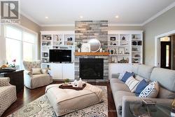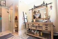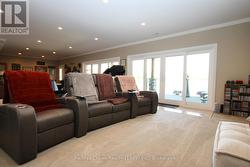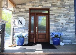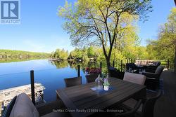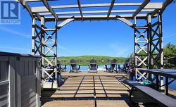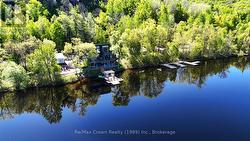 Welcome to lakeside elegance in this custom executive class 5-bedroom, 4-bath waterfront home offering over 4,000 sq. ft. of beautifully designed living space. Set literally on the shores of sought-after Restoule Lake with over 500' of owned shoreline, designed with sophistication in mind, this home offers the perfect setting for luxury living and exceptional entertaining. The main level impresses with soaring 10 ceilings, open-concept living and dining complete with gas fireplace and custom built-ins plus a wall of windows showcasing the panoramic lake views. The chef's kitchen features dual wall ovens, stove cooktop, double dishwashers, walk-in pantry, and double refrigerators - perfect for entertaining. Walk out to the massive deck (60' x 11'8") with glass railings, or relax in the warm and inviting Muskoka room. A office/den with deck access and full bath completes the main level. Upstairs, a grand hallway leads to five spacious bedrooms. The primary suite is a private retreat with a spa-inspired ensuite, walk-in closet, and elevated private lakeview deck. The upper level also features an additional full bath with luxury walk-in shower and convenient laundry. The lower level boasts a spectacular 48' x 19' rec/games room opening to a 61' x 11'6" covered patio to enjoy your lakeside retreat regardless of weather. Step directly onto the dock from the patio or into the relaxing hot tub, then gather around the lakeside fire pit for an evening of star gazing. Additional features include: detached double Carport, lakeside storage building or art studio (30'x14'), Surveillance system, outdoor timed lighting, dual level climate control, 3 speed fans in every bedroom, back-up generator, 50'x16' floating docking system w/pergola. This stunning waterfront oasis offers endless possibilities - whether as a luxury bed-and-breakfast, a private retreat or a year-road residence for the "Ultimate Lakeside Lifestyle". Seller will consider holding a first mortgage. (id:27)