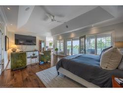 Nestled in the lakeside town of Port Dover, 649 East Quarter Line represents a rare opportunity to acquire a private estate of exceptional scale and refinement. Set on 48 acres of pristine countryside, this modern stone residence combines serenity with convenient access to town amenities. Spanning more than 7,600 square feet, the home offers 4 bedrooms and 6 bathrooms, including two primary suites,one on each level. Each features a spa-inspired ensuite, expansive walk-in closet, and covered porch access with automated screens. The upper suite further distinguishes itself with a coffered ceiling, sitting area, private office, and a bespoke dressing room with center island. Exceptional views from every room frame rolling fields and pastoral landscapes. The chef’s kitchen is both functional and elegant, showcasing dual islands with quartz counters, Wolf appliances—including an 6-burner range with griddle—dual fridge and freezer, wine storage, and a professional hood fan. A fireplace-warmed dining area opens to a covered porch, while the sunken living room with its dramatic stone fireplace offers the perfect setting for entertaining. Additional highlights include a formal dining room, private office, and heated 4-car garage with direct mudroom access. Above the garage is a private guest suite with independent entry which offers versatile accomodations. A separate 3-door garage/workshop with epoxy floors provides space for equipment or recreational toys. Outdoors, the estate becomes a private retreat with tiered stone patios, shaded sitting areas, and a step-down pool with integrated hot tub. From the back patios, the vistas are breathtaking, expansive and ever-changing with the seasons, creating a serene backdrop for both morning and evening gatherings. Blending timeless craftsmanship, refined finishes, and acres of unspoiled natural beauty, this estate stands among Port Dover’s most distinguished offerings. Book your showing today. This lifestyle could be yours!