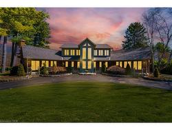 Stunning Country Estate !!! This One-of-a-Kind Masterpiece, captivates from the very first glance with unmatched curb appeal and distinctive design. A true architectural gem, the home showcases custom exposed timber and iron construction, offering a dramatic welcome with soaring 26-foot ceilings in the foyer & great room. Anchoring the space is a striking gas stove and dramatic staircase just two of of the many bespoke touches throughout. The chefs kitchen is a showstopper in its own right, thoughtfully positioned between the great room & the expansive rear deck. Designed for seamless indoor-outdoor living, its perfect for entertaining on any scale, from intimate gatherings to grand events incorporating the sparkling heated saltwater pool, hot tub, deck, & beyond. Prepare to be awestruck yet again in the window-walled family room, where vaulted ceilings rise above a stunning floor-to-ceiling brick fireplace. Here, panoramic views of the beautifully manicured grounds, create a tranquil yet breathtaking backdrop for family gatherings. The main floor offers 2 bedrooms, including an expansive primary suite that feels like a private retreat. It features a luxurious 5-piece spa-style bath w/glass shower enclosure, a generous walk-in closet & direct access to the deck through a private walkout. Additional features include renovated 3 piece bath & laundry rm. The sweeping, open-riser circular staircase leads to the equally impressive upper level. Here you'll find two spacious bedrooms, a sleek and modern 3-piece bathroom, and a versatile loft-style den or studio area. The open-to-below wrap around balcony offers a front-row seat to the craftsmanship of the handcrafted artistry that defines this remarkable home. For the hobbyist or DIY, an incredible bonus awaits: heated 1,200 sq ft- accessory building, fully equipped with a 3-piece bathroom. This versatile space is ideal for a workshop, studio- home gym, the possibilities are endless!