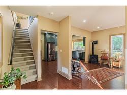 Beautifully updated century home located next to a park with walking trails and within walking distance to shopping and coffee shops. Thischarming 2-storey home offers 3 bedrooms, 1.5 baths, and a detached garage. Enjoy a relaxing front porch with a view of the park and maturetrees. Inside features a modern kitchen with quartz countertops and brand-new Samsung stainless steel appliances, cork flooring on the mainlevel, engineered hardwood upstairs, and main floor laundry. Finished basement includes an extra room perfect for a playroom, workshop, or artstudio. Recent updates include windows, Siding, furnace, A/C (2021), wiring, and electrical panel. Additional highlights include a gas fireplace ,ejection pump for dog wash (2021), owned water heater (2021), owned water softener (2024), rear porch and dog run (2022), and natural gasconnections for stove and BBQ. Located in Simcoe, just minutes from schools, school bus routes, churches, Book Stores, Farmers markets and alldaily essentials. Plus, you're only a short drive to local wineries, breweries, and the sandy shores of Port Dover Beach. This home checks all theboxes: custom style, modern finishes, and a prime location. A must-see!