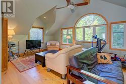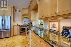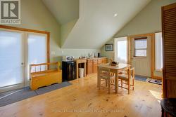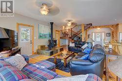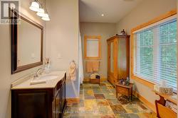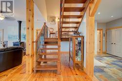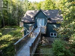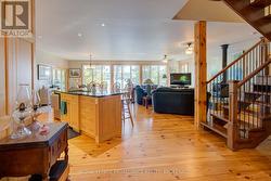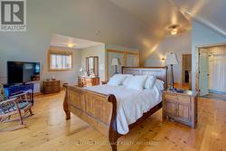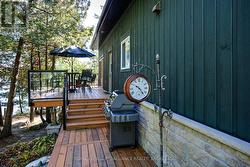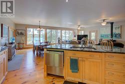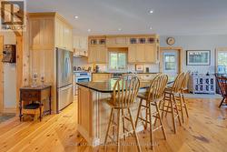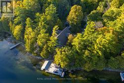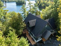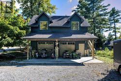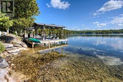 Waterfront oasis on Buck Lake! This beautiful property features 2+ acres of land and200 ft of shoreline. This gorgeous home sits close to the lake with level access to shallow water and deep water off the dock. Enjoy the large dock, covered boat slip and tiki bar - with southern exposure for sunrises and sunsets. The view is stunning looking out over the bay and the location is private & peaceful. As you enter under the timber frame porch, you immediately feel a sense of relaxation in this stunning lake house. The main floor has a large, open concept Great Room with expansive windows and access out to the deck. The custom Corelle Kitchen is a showpiece with Madagascar blue granite countertops, dbl drawer dishwasher, under-counter microwave and a pot filler above the propane stove. Enjoy cozy evenings with the warmth of the Pacific Energy wood-stove. The main floor bedroom has an attached 4-pc bath that also has access from the foyer. The office next to the foyer could be another bedroom. The bathrooms and foyer have heated slate floors while the balance of the home has wide-plank pine flooring - from trees on the property! The second level features a large bedroom at the rear, laundry area and an amazing primary bedroom with cathedral ceilings, custom cabinets, a 3-piece ensuite bath and gorgeous views over the pristine waters of the lake. The partial basement has concrete floor & spray foam walls and the home is heated by propane forced air, has 200-amp service, a lake water system with UV light, Hide-A-Hose central vacuum, HRV, electric hot water, A/C and an on-demand backup generator system. A catwalk leads from the house to extra living space above the 2-car detached garage. This space has a large family room, dining area, kitchenette along with a bedroom and a 2-piece bath. The exterior of the home and garage have vertical Timberthane wood siding with a lifetime guarantee. Stunning home located just south of Westport or 40minutes north of Kingston. (id:7525)