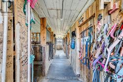 Beautiful hobby farm in St. Andrews West, just off Island Road, offering the peace of country living on approximately 100 acres of picturesque land. A long private laneway brings you to a solid 2+2 bedroom brick bungalow with a durable metal roof, set proudly among open fields and treed backdrops. The home features many valuable updates including a Generac backup system, newer air conditioning, and updated electrical service to the barns. The layout provides comfortable main-level living, main floor laundry, with additional finished rooms on the lower level for extra space or guests. Horse lovers will appreciate the well-maintained 7-stall barn, currently set up for equine use, along with fenced pastures and a former riding area. A second outbuilding, once used for hogs, now offers excellent storage for four-wheelers, tractors, machinery, hay, or workshop space. Follow the trails toward the back of the property and discover a true hunter's paradise or quiet nature retreat. Tucked away from the main home sits a charming 1.5-storey hunting cabin, offering seclusion, peace, and a place to unwind beside the gentle sounds of a nearby stream. Perfect for snowmobiling, camping, or simply enjoying the beauty of your own land. This is a rare opportunity to own a country sanctuary where you can ride, farm, explore, or simply enjoy the quiet rhythm of rural life. Make this beautiful property yours. (id:27)