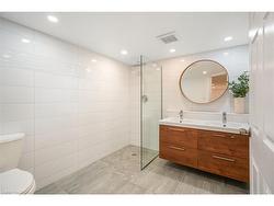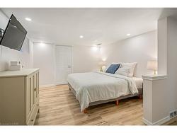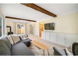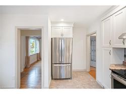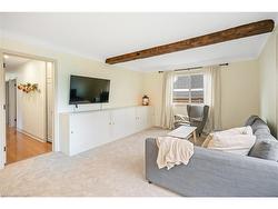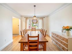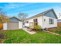 **OPEN HOUSE Saturday December 6th - 2pm to 4pm** Located in the heart of the north end, within walking distance to the neighbouhood park and school, this meticulously maintained 1,400 square foot bungalow sits on a quiet, tree-lined street where families walk their dogs and neighbours still wave to one another. The stamped-concrete 4 car driveway and well-kept exterior immediately set the tone. A large detached garage with drive-through rear door adds convenience and versatility, while the enclosed breezeway keeps everyday coming and going comfortable in any season. Inside, the home feels warm, inviting, and exceptionally cared for. Hardwood flooring flows through the front living/dining area and then onwards to the hallway and bedrooms. The white and bright kitchen features stainless steel appliances, tiled backsplash, pot lighting, and a large window overlooking the front yard perfect for watching kids arrive from school or keeping an eye out for arriving guests or deliveries. The original living room is currently styled as a spacious dining room, although the layout easily adapts to suit your lifestyle. At the back of the home, a large main floor family room is perfect for everyday living. It features brand-new carpeting (November 2025), a freestanding gas fireplace, beamed ceiling, sliding patio doors, and a picture window overlooking the backyard. The 5-piece bathroom includes double sinks and a combined jetted tub with shower. The lower level currently functions as a full primary suite with vinyl plank flooring, pot lighting, a walk-in closet, rough-in for bar/kitchenette, and a modern 4-piece ensuite with tiled shower, glass panel, and double sinks. Mechanical updates include new furnace/hwt (2020), central air (2023), upgraded insulation in attic to R40 (2020), roof shingles (2024) plus all updated windows. The fully fenced, big and private backyard is designed for real-life enjoyment.