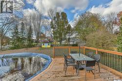 Welcome to one of Mount Brydges' most sought-after neighbourhoods! This charming raised ranch sits on a private, fully fenced 87 by 164 lot and is ready to welcome its next owners. Perfectly designed for family living and entertaining, the backyard is a true oasis featuring a two-tiered deck and a 2022 above-ground pool - ideal for summer days and cozy evenings alike. Inside, the open-concept main floor flows seamlessly from a spacious living room to a bright kitchen with a functional island, and a dining area with French doors that open onto the upper deck. Three generously sized bedrooms and a 4-piece bathroom complete this level, creating a warm and comfortable space for a growing family. The lower level offers even more living space, including a recreation room with a gas fireplace and built-in shelving-perfect for movie nights or game days-plus two additional bedrooms and a 3-piece bathroom. The utility room includes laundry, storage, and walk-up access to the one-car garage, adding convenience to everyday living. Practical updates include roof shingles replaced in 2020, Air Conditioner 2022 and shed shingles in 2025. The driveway provides ample parking for up to four vehicles. Mount Brydges offers the charm of small-town living with the convenience of a short drive to London. With a welcoming community and a neighbourhood that feels like home, this property isn't just a house - it's a lifestyle. (id:27)