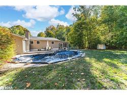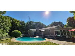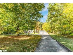 34-ACRE COUNTRY RETREAT WITH AN INGROUND POOL, IN-LAW POTENTIAL & LIMITLESS POSSIBILITIES! Set on an incredible 34-acre property surrounded by towering trees and peaceful natural beauty, this sprawling bungalow offers true country living with endless room to roam, complete with manicured trails perfect for walking, biking, or snowmobiling. Embrace a lifestyle defined by nature and tranquillity, just minutes from Georgian Bay’s beautiful beaches, local parks, and a grocery store, with Wasaga Beach only 15 minutes down the road. The property makes an unforgettable first impression with a circular driveway offering parking for more than 20 vehicles, a detached double garage, multiple sheds, and plenty of space for a future shop. The expansive backyard features an inground pool surrounded by a generous patio, perfect for outdoor entertaining or quiet relaxation. Over 3,200 finished square feet, including more than 1,850 on the main level, provide an abundance of living space for families, multi-generational living, or those dreaming of a country retreat. The large kitchen features white cabinetry, built-in appliances, a centre island, and an open connection to the formal dining room, making it ideal for hosting gatherings. The bright living room overlooks the treed front yard, while the family room features a cozy wood fireplace and a walkout to the backyard. A separate sun-filled hot tub room with a fireplace offers an additional sliding door walkout leading to the pool and patio area. The finished basement extends the possibilities with in-law potential, complete with a second kitchen, living room, den, rec room, two bedrooms, and a full bathroom. Whether you envision a peaceful family haven, a multi-generational escape, or simply a property with room to grow, this exceptional #HomeToStay is filled with opportunity and ready for your personal touch to make it truly yours!