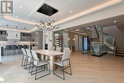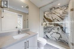 Welcome to 111 Banstock Drive - a modern, custom-rebuilt residence on a rare 60-ft premium ravine lot. Offering nearly 6,000 sq. ft. of refined living space, this 4+2 bedroom, 6-bath home features a fully finished walk-out basement and an impressive layout designed for both luxury and comfort.The main level boasts soaring 10-ft ceilings (with 8-ft doors), while the upper level features 9-ft ceilings, creating an open and expansive atmosphere throughout. Enjoy a modern open-concept living and dining area with floor-to-ceiling windows that showcase stunning ravine views and flood the home with natural light. A walkout to the deck extends your living space outdoors, perfect for relaxing or entertaining.The chef-inspired kitchen includes a striking quartz island with bar and breakfast seating, premium large-format porcelain tiles, hardwood flooring, and a sleek floating wine display. An open floating staircase with a skylight connects all levels of the home, enhancing the airy architectural design. Additional features include LED pot lights, a built-in sound system, and smart-home security hardware, all programmable through a central SmartHub. A private home office with custom built-ins and its own open terrace provides the ideal workspace. The upper level offers four spacious bedrooms, each with its own ensuite bathroom. The double-door principal suite features a spa-style ensuite with an oversized shower, floating vanity, and luxury finishes throughout. A rare second principal bedroom adds even greater flexibility for multi-generational living.Each bathroom is thoughtfully designed with distinctive porcelain finishes, accent wall details, and quartz shower benches, delivering a high-end hotel-spa feel throughout the home.This prime location offers unmatched convenience - steps to top-ranked schools, plazas, shopping centres, parks, transit, and just minutes to major highways, making everyday living easy and accessible. Close to all amenities and much more. (id:27)