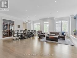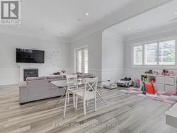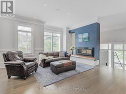Custom-built modern manor in prestigious Bathurst Manor, offering over 6,000 sq. ft. of exceptional living Space. This residence combines contemporary elegance, accessibility, and thoughtful design, set on a premium 50' x 150' fully fenced lot with a level backyard ideal for entertaining or future pool installation. The main level showcases 10-ft ceilings, engineered hardwood floors, and an open-concept layout designed for both comfort and style. The living room has a double-sided gas fireplace which overlooks the front door, while the family room has another gas fireplace opens to a gourmet eat-in kitchen featuring custom cabinetry, integrated appliances, and a large island for casual dining. The dining room has a walk-in spirit/wine display. A private den provides the perfect home office or study space. A private elevator, accessible from the grade-level garage, offers seamless mobility between all floors - an ideal feature for multi-generational living or aging in place. The upper level features four bedrooms, each with a private ensuite and 9-ft ceilings. The primary suite includes a 7-piece spa-inspired ensuite with steam shower, bidet, double vanity, freestanding soaker tub, and an electric fireplace heated floor. A separate HVAC system ensures personalized climate control, with sound-insulated laundry and furnace room for added peace. The lower level offers 12-ft ceilings which is 7.5 ft of above grade height, creating a bright living space with a walkout to the backyard, full kitchen, two bedrooms, and family room with gas fireplace - perfect for guests or extended family. The basement approximately 120 sf, has a laundry room and cold cellar. Smart home technology Includes three touchscreen keypads, multi-zone audio, and an integrated security system. Every element has been carefully curated to combine luxury, comfort, and innovation in one of Toronto's most desirable neighbourhoods. (id:27)