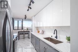 Step into elegance with this exquisite, fully renovated 2-bedroom + den, 2-bathroom condo in the prestigious North York community. Nestled amidst the lush, serene landscapes of G. Ross Lord Park, this meticulously upgraded 1,060 sq. ft. residence offers an unparalleled blend of sophistication and modern comfort. Designed with a seamless open-concept layout, the space is bathed in natural light, accentuating the rich vinyl flooring and carefully curated finishes.The gourmet kitchen is a chef's dream, featuring stunning quartz countertops, and backsplash,and top-of-the-line appliances (only 3 years new). The versatile den serves as the perfect home office, an inviting third bedroom, or a charming playroom. Indulge in the convenience of an en-suite locker, providing ample storage without compromising on style. Every detail has been thoughtfully designed to offer the perfect balance of luxury and functionality. The building offers excellent amenities including a gym, pool, sauna, ping pong and billiards room, with a bus stop to finch station commuting and outdoor activities are effortless plus the highly anticipated new Centennial library set to open in 2025. Combining pace, comfort and convenience this condo is a fantastic place to call home! (id:27)