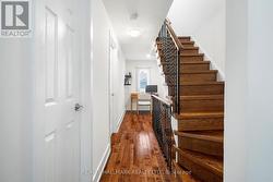 Exceptional 3-storey townhouse in the heart of downtown Torontos east side. Steps to TTC streetcar, with quick access to the DVP, Gardiner, Queen Street East, Corktown, and the Distillery District. Surrounded by vibrant shops, restaurants, and amenities. This home offers 3 spacious bedrooms, 2 renovated bathrooms, and parking for 2 cars. Bright, open-concept main floor with hardwood throughout, updated kitchen with quartz countertops, marble backsplash, stainless steel appliances, and a striking wrought iron staircase. Upper-level primary retreat features a sun-filled walkout balcony, bdrm large enough for a California king, walk-in closet, and private ensuite. Lower-level laundry with direct access through the garage. Beautifully landscaped exterior oasis with stone interlock, perfect for barbecues and outdoor dining. A rare opportunity to own a stylish, move-in ready home in one of Toronto's most desirable east-end communities. (id:27)