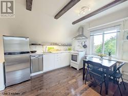 Welcome to your new home! This one-bedroom sanctuary (plus bonus room/office)has real character and might just be the answer to your prayers (well, maybe not all of them-but it's a good start). Located on the upper floors of a private triplex, this light-filled apartment blends century-home charm with modern comfort. Exposed beams, feature walls, and hardwood floors (made with actual wood) give it warmth and personality, while modern conveniences like en-suite laundry and dishwasher ensure you're firmly in the 21st century. The bonus room is perfect for a home office, to unleash your inner Picasso, or to practice yoga and meditation-whatever inspires your creative or zen side. Step outside to your massive private terrace surrounded by mature trees and lush greenery. It's like having your own treehouse - minus the drive to Muskoka (and the bears). On snowy winter days, a cozy nook in the living room awaits, perfect for curling up with a blanket and hot chocolate-because hibernation is real. With wonderful neighbors and a clean harmonious atmosphere, you'll feel at home from day one. As an added bonus, there's a shed-because your bike deserves a home, too. Located in Toronto's Upper Beaches-East York area, you're close enough to downtown with direct streetcar access to downtown for work and fun, yet far enough from the concrete jungle to enjoy peace and tranquility among mature trees. TTC streetcar is steps away, and Woodbine and Coxwell subway stations are both within walking distance. Woodbine Beach and the boardwalk are nearby-our own Canadian version of Baywatch (minus the slow-motion running). You'll pay 1/3 of the utilities (it won't break the bank) and need a street permit for parking (cheap!). The home is non-smoking. Well-behaved pets are welcome-except alligators. Vacant and ready for move-in. Come take a look and prepare to fall in love. UNIT FULLY OR PARTIALLY FURNISHED. (id:27)