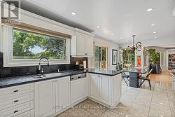 Exceptional Custom-Built Home on South-Facing Cul-de-Sac! Nestled on one of the original builder lots, this beautifully renovated residence offers 4+3 bedrooms and sits on a premium lot backing onto a tranquil, winding river and pond. Enjoy wide, sweeping views from every angle arguably the best in the neighbourhood! Featuring 4 walk-outs to expansive updated decks with sleek glass railings, including a large deck off the kitchen and a private one from the primary suite. The professionally finished walk-out basement adds versatile living space, complete with a stone-accented recreation room and additional bedrooms. Designer brick exterior, 100 ft rear fencing, and an elegant 4 ft x 4 ft skylight above the spiral staircase add to the home's architectural charm. Inside, you'll find a cathedral-style hallway, granite floors in the foyer, kitchen, and laundry, plus a fully modernized kitchen with granite counters and backsplash. The granite fireplace in the family room is a (id:27)
