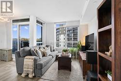 Truly a rare find at Park Terraces. This 2 bedroom, 2 full bathroom corner unit with wrap around balcony (including a gas line for your BBQ and a water line for your plants too!) Ideal layout with maximum natural light from the multiple windows of this corner suite! Upgraded finish package includes integrated appliances, kitchen island, custom remote Hunter Douglas blinds, newly installed washer/ dryer pair and upgraded lighting throughout. Ensuite bedroom has a sizeable walk in closet as well as a separate den space located away from main living area. In addition, you'll love all this boutique building has to offer. Full service amenities including 24 hr Conceirge, outdoor pool, play area for the kids, gym, party room, sauna, library and more! Direct access to Hwy 427, 401 and Gardiner Expressway. Convenient shuttle to subway at your door! Internet included in condo fees. (id:27)