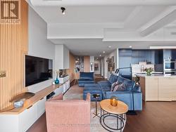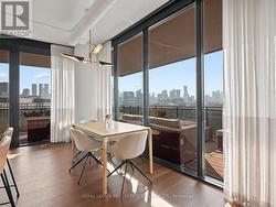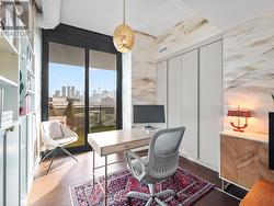 Welcome Home! This is truly a gem in the sky. A highly desirable corner unit boasting over 1200 sqft with premium, high end finishes and an eye for detail as featured in both Style at Home and House & Home Magazines. Spectacular natural light bathes the space from the massive floor to ceiling windows. It's modern living with calm serenity. Expansive 9ft. ceilings with exposed concrete and pillars are true loft attributes. The main room is expansive, open and inviting. This professionally designed space was customized to adapt to the floor plan and all of the well considered design elements come together in a one-of-a-kind living experience.Transforming a third bedroom into a more spacious living space gave the main sitting area space to spread out and the bespoke wood wall coverings hiding functional storage options. The open concept design has a dining room and a sit in kitchen which is designed for foodies with a massive island boasting a Bosch Induction cook top, a Bosch dishwasher and two wall mounted KitchenAid ovens. There's a Subzero fridge with an ice maker, a wine fridge and plenty of storage drawers and cabinets.The primary bedroom has its own private wing of the unit with a kingsize bedroom, custom doors, a walk in closet and spa like ensuite.The second bedroom is down its own hallway and offers light and privacy. It could double as an office space. The second washroom boasts beautifully designed Missoni wallpaper and a tub with shower. In the front entrance, multiple hidden closets help all your belongings disappear and keep your entryway clean.The icing on this beautiful cake is the massive 694 sqft wrap around terrace. With professional decking, artificial turf, custom lighting, large planters and gas hookup for the BBQ and fire pit. A memorable and inviting space to entertain and take in beautiful sunsets and spectacular views. Parking comes with an electric charger, a locker and two bike spots. It is a need to see!! (id:27)