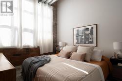 A featherweight name, but a heavyweight loft. Once home to the B.F. Harvey Co. bedding factory, the Feather Factory (c. 1911) now stands as a boutique hard loft that blends century-old character with modern style - right in the heart of Roncesvalles. Dramatic 15-foot ceilings, original wood beams, and exposed brick set the backdrop for a home that feels both expansive and intimate. Factory-style windows invite eastern light to pour across the space, framing skyline views that shift with the day. The stainless-steel counters and oversized breakfast bar add a cool, utilitarian edge to a space that's effortlessly stylish. This 1-bedroom, 1-bathroom loft doesn't try to impress, it just does. Authentic, rare, and ready for its next chapter. Step outside and you're surrounded by Roncy's best: morning coffee at Propeller, dinner at The Commoner, a film at the Revue. High Park, Sorauren Farmers Market, the Railpath, and MOCA are all within easy reach. Streetcar, subway, GO, and UP Express are minutes away. For people who don't do boring. This one's for you! (id:27)