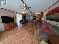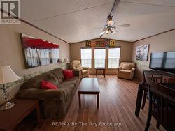 Enjoy your Seasonal Getaway at Wasaga Countrylife Resort! Now is the time to secure your seasonal cottage retreat! This immaculate 2009 Northlander Cottager Escape model offers the perfect blend of comfort and convenience in the highly sought-after Wasaga Countrylife Resort. Available from April 26th to November 17th, this charming 2-bedroom, 1-bathroom cottage is nestled on a quiet street, just a short stroll from the stunning sandy shores of Georgian Bay. Step inside to find a bright, open-concept kitchen and living area with vaulted ceilings, modern appliances, and ample cabinetry for all your storage needs. The primary bedroom features a cozy queen-size bed & walk-in closet, while the second bedroom includes bunk beds with generous under-bed storage ideal for families. Oversized covered deck is ready for entertaining. Firepit with interlock patio area and shed. Set on a fully engineered concrete pad, the unit also offers clean, dry storage space beneath, a paved driveway. This fully furnished cottage is turnkey and ready for your family to enjoy right away. Resort amenities include:5 inground pools & splash pad Clubhouse & tennis court, Playgrounds & mini-golf, Gated security and a short walk to the beach. Seasonal site fees for 2026 are $6,740+HST+ HST. Don't miss your chance to own this peaceful vacation retreat schedule your showing today and make every summer unforgettable! (id:27)