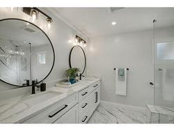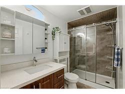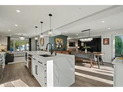 Welcome to this stunning 4-bedroom, 4-bathroom home, completely reimagined with high-quality construction and modern design. Offering an impressive approx 3400 square feet of finished living space, this home seamlessly blends comfort, style, and functionality.The main floor features a chef’s dream kitchen with a large island and striking quartz waterfall countertop, complemented by newer appliances and an open-concept layout that's perfect for both everyday living and entertaining. A soaring foyer welcomes you into spacious living and dining areas, with a cozy gas fireplace that adds warmth and charm to the space.Upstairs, you'll find generously sized bedrooms along with an additional family living room—an ideal spot for a kids’ play area, media lounge, or quiet retreat that offers even more versatility for a growing household.The fully finished basement includes a large recreation room and a private in-law suite with its own wet bar and bedroom, making it perfect for multi-generational living, or guests.Recent upgrades include a new water softener installed in 2022, updated eavestroughs in 2024, and new basement windows/window wells added the same year. New kitchen appliances (2022), new washing machine (2025). Located in a fantastic neighborhood close to scenic trails, shopping, and a wide range of amenities, this beautifully updated home is truly move-in ready and designed to suit the needs of modern living.