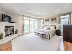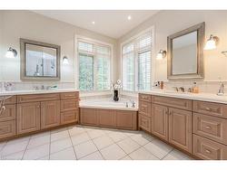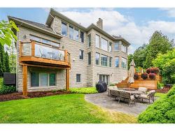 Discover refined living in the prestigious River Oak Estates—where timeless design meets an extraordinary natural backdrop. Set on a lush half-acre lot backing directly onto the Grand River, this 6,000+ sq. ft. residence captures breathtaking views of the water, pond, and Grand River Trail. Thoughtful landscaping enhances its privacy and curb appeal, creating a truly peaceful setting.Inside, sophistication unfolds across three levels, with 5+2 bedrooms and 6 bathrooms offering comfort and flexibility for family and guests. The grand foyer opens to an elegant staircase and sun-filled formal living and dining rooms—ideal for entertaining large gatherings. The kitchen, complete with an oversized island and casual dining space, extends to a spacious deck overlooking the river. A stone wood-burning fireplace anchors the family room, where floor-to-ceiling windows frame the scenic outdoors.The main floor suite is a private retreat featuring a gas fireplace, walk-in closet, and balcony access. Its luxurious ensuite includes dual vanities, a soaker tub surrounded by windows, and a glass walk-in shower. Upstairs, you’ll find four additional bedrooms, a home office with custom built-ins, and a dedicated media room.The lower level offers two more bedrooms, a 3-piece bath, wet bar, games area, and walkout access to a stone patio and landscaped gardens—perfect for indoor-outdoor living.Blending comfort, elegance, and a rare connection to nature, this River Oak Estates home delivers a lifestyle as remarkable as its setting.