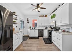This beautifully renovated large 2.5 story character home in the heart of Welland ,shows pride of ownership from top to bottom. Sitting on a generous size lot of 43 x '116, with a fully fenced in yard, new concrete driveway (2022)leading back to a one car garage with ample parking for 7 vehicles. The fully covered large front porch is a great space for relaxation and enjoyment on those Summer evenings. Exterior upgrades include new Soffits, eavestroughs and downspouts (2024) as well as a new garage roof. Inside you will find tastefully, stunning upgraded rooms throughout. The main floor boasts new laminate flooring, large spacious rooms and a beautifully finished two piece bath. Newer shaker style kitchen with walk out to back deck, perfect for entertaining. The second story includes 3 large bedrooms, all with pristine hardwood floors, large 4pc bath, complete with soaker tub. Walk up to the third floor offers an open finished attic perfect for extra living space or a 4th bedroom. Full, clean high and dry basement with a roughed in bath, large rooms and tons of storage space. New water heater (2024), new panel box (2024), interior doors (2023/2024)and much more. This home is a true gem, sparkling from top to bottom, with nothing left to do but move in and enjoy!