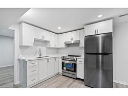 Be the first to live in this spacious newly renovated 4 beds lower level unit, with a separate private entrance. 4 Parking included!! Designed with comfort and convenience in mind, this basement apartment is ideal for families, professionals, or students looking for plenty of space and modern finishes. Features include: 4 Large bedrooms, each with closets. Bright and spacious living room, Modern brand-new kitchen with quartz countertops and stainless steel appliances. New bathroom with fresh finishes separate laundry area with brand new washer and dryer. (exclusive use) NEVER USED APPLIANCES CAN BE FULLY FURNISHED UPON REQUEST High ceilings and large windows for great light, peace of mind: The entire foundation has been professionally waterproofed at significant cost ensuring the basement stays completely dry. Additional perks: Easy-to-maintain vinyl flooring through-out (no carpet) High efficiency furnace and central A/C for year-round comfort. Freshly renovated from top to bottom, move-in ready! This is a rare opportunity to lease a bright, spacious and worry free lower-level apartment that feels like brand-new construction.