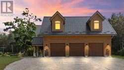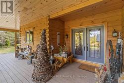 Luxury Country Retreat Nestled on a Peaceful, Private & Lovingly Landscaped 9.8-Acre Property. As you approach the magnificent log home, which commands attention, you'll be drawn to the front steps leading up to the welcoming composite porch, inviting you to explore the interior. As you step through the front door, you'll be greeted by a bright, spacious, and immaculate interior. The main floor showcases an impressive kitchen with an oversized island & a complete appliance package, dining area with access to expansive deck, a grand great room with soaring cathedral ceilings, & a stunning wood burning fireplace that makes a bold statement complete with a dumb waiter for added convenience. The tranquil primary bedroom features a five-piece ensuite and a walk-in closet that meets your every need. Another full bathroom, a large laundry room, & a practical mudroom completes the main level. As you ascend the log stairs to the second level, you'll appreciate the open office space overlooking the main floor and discover two generous bedrooms sharing another well-appointed bathroom. The walkout basement presents endless possibilities - ample space for a workshop, storage, separate panel for generator, or your own custom finishing touches. There's also a substantial cold room with walk up access to the triple car garage, plus a fully finished loft above the garage with custom finishing touches that any guest would absolutely love and may never want to leave. After you've explored the spectacular interior, step outside to find an older home used for storage, along with a large storage shed & a garden shed, surrounded by many perennial flower beds. This property offers not just a home, but a serene lifestyle in a beautiful setting on a quiet country road within minutes to Allan Park Conservation Area where you can enjoy fishing, cycling, snowshoeing, skiing & hiking trails, and tobogganing. Are you ready to confidently claim this extraordinary home and property as your own? (id:27)