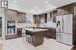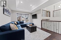 Stunning family home, boasts a large entrance with an open concept living space and features a well appointed kitchen with upgraded stainless appliances and granite tops, offering quality flooring throughout with custom trayed ceilings . Main floor offers two bedrooms plus an attractive super sized bonus room with a gorgeous ensuite, walk-in closet and double frosted doors that open to a balcony overlooking the main floor. Enjoy the fully finished basement having a large area with wet bar open to rec room with attractive stone fireplace for relaxing nights . Complete with large 3pc bath ,2 additional bedrooms ,great laundry area and grade entrance for your convenience. Enjoy the private fenced back yard with covered deck and patio areas. Large garage complete with electric car hook up. Fantastic location in South Windsor. (id:27)