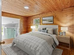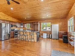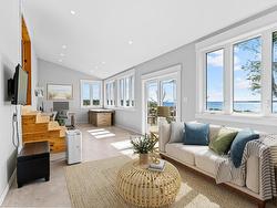 Welcome to your private waterfront retreat! This beautifully updated 3 bed, 2 bath home is nestled in a tranquil, tree lined setting and includes three additional waterfront lots (.59, .68, and .73 acres), offering space, privacy, and future development potential. Ideal for year round living, a weekend escape, or investment. The open concept layout connects the living, dining, and chefs kitchen, featuring custom Prestige cabinetry, stainless appliances, and a large island. The spa like primary ensuite boasts a steam shower, built in TV, and radio. A second full bath includes a laundry area, and a reverse osmosis system ensures fresh water throughout. Enjoy the sun filled flex room perfect as a home office or den with direct outdoor access. The spacious deck and private dock provide the perfect setting for morning coffee, fishing, or boating. A barn adds storage or hobby space, and electrical is in place for a future garage. Surrounded by mature trees and scenic views, enjoy all-season outdoor living from paddleboarding in summer to ice fishing and cross country skiing in winter. With three extra lots, the options are endless build, expand, or enjoy your own private sanctuary. Do not miss this rare waterfront opportunity. Book your private showing today! Photos are virtually staged.