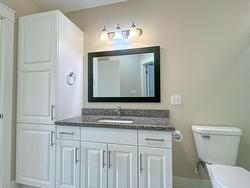 Exquisite 210 Shakespeare Dr. Condo 108 Stratford. A stunning main-level condo, enjoy an open floor plan with beautiful flooring, seamless flow between the kitchen, dining and living room. Affordable living with electric heat (heat pump), lights, hot water and air condition. -Gourmet Kitchen: The centerpiece of the home is the striking white kitchen cabinetry complemented by sleek stainless steel appliances, a gorgeous kitchen island, and granite countertops. -Natural Light: Large patio sliding doors provide ample natural light and lead to a charming balcony, perfect for relaxation. -Outdoor Beauty: Mature landscaping enhances the aesthetic appeal, both in the front and back entries. Bedrooms & Bathrooms: -Primary Suite: Generously sized, accommodating a king-size bed along with space for a desk and dressers. The elegant primary bathroom features a beautifully tiled glass shower, a large granite vanity, and a spacious walk-in closet. -Second Bedroom/Den: Currently utilized as a cozy den/guest bedroom, offering versatility for your needs. -Second Bathroom: Includes a surround tub and shower, vanity, and toilet. Additional Features: - Deeded parking space and a large air-conditioned storage area in the lower level. - Maintenance fees: $186.81/month. - Built in 2019, this condo is in excellent condition. Community Amenities: - Located in Stratford, with easy access to golf courses, parks, playgrounds, public transit, and shopping. - Community features recreational facilities and school bus access. General Info: - Property Type: Single Family - Total Finished Area: 1,147 sq. ft. - Ownership Type: Condominium/Strata - Age: 5 years - Cooling: Air exchanger - Exterior Finish: Vinyl This exceptional condo offers a perfect lifestyle with its blend of modern amenities and convenient location. Don’t miss out on this opportunity!