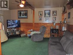 This acreage is on 80.45 acres. It is set up for someone with horses or cattle. There is a portion fenced with corrals and wind break building with watering bowl. A portion of the land is good for hay. The yard has plenty of grass and trees. There is a detached garage with power and concrete floor. The storage shed provides extra room to keep lawn care items in. The front of the home has a large deck. The main entrance has access to the living room with dining room off of it. There is a full bathroom also off the entrance. The side entrance has the laundry room and access to the basement. The main floor has three large bedrooms, and a den. The basement is partially finished with the utility room, 3 piece bathroom, and rumpus rooms. (id:27)